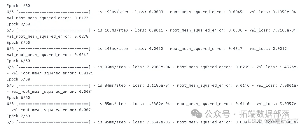 plot\_model(lstm, to\_fue, show\_layer\_names=True)hist = lstm.fit(X_train, y_train,batch_s)此语句执行了 LSTM 模型的拟合过程。在这个过程中,模型学习输入数据X_train和对应的目标数据y_train之间的关系,并通过调整模型的参数来最小化预测误差,以达到良好的拟合效果。