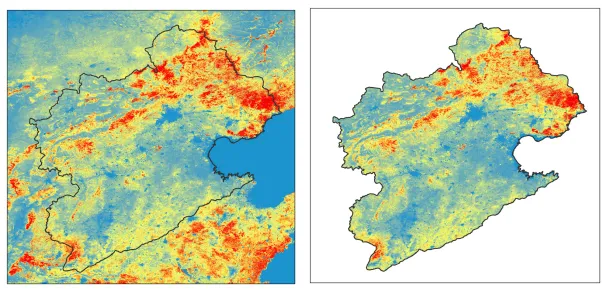 下载后的数据为hdf格式,根据研究需求,对下载后的数据进行处理,包括数据格式转换、定义投影、对应栅格值提取、数据汇总等。