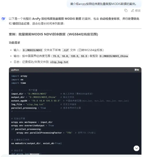 ArcPy可以用来对空间数据进行批量处理以及地图制作自动化,本课程将演示如何利用AI生成批处理脚本,提高GIS处理效率,实现数据准备和结果可视化的自动化。