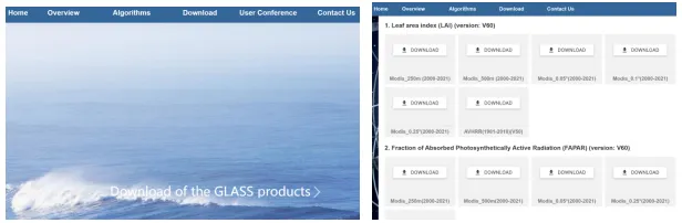 GLASS是一个全球陆地表面遥感数据集,提供了高分辨率的植被叶面积指数(LAI)数据,空间分辨率为250m/500m/0.05°,时间分辨率为8天。