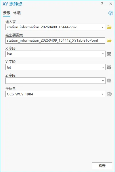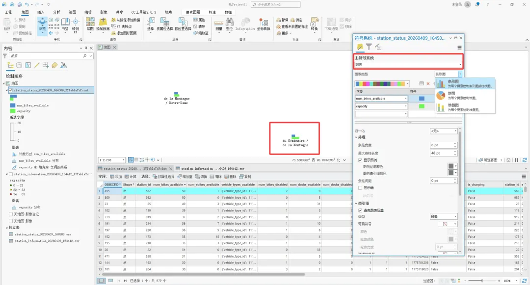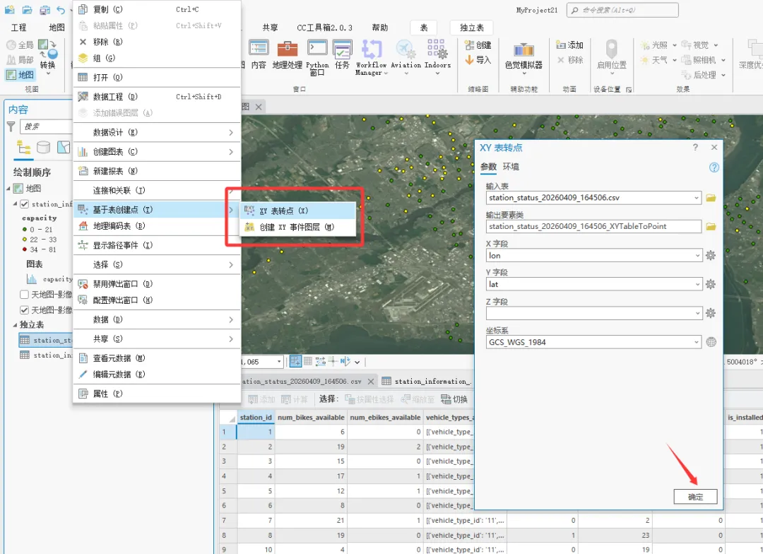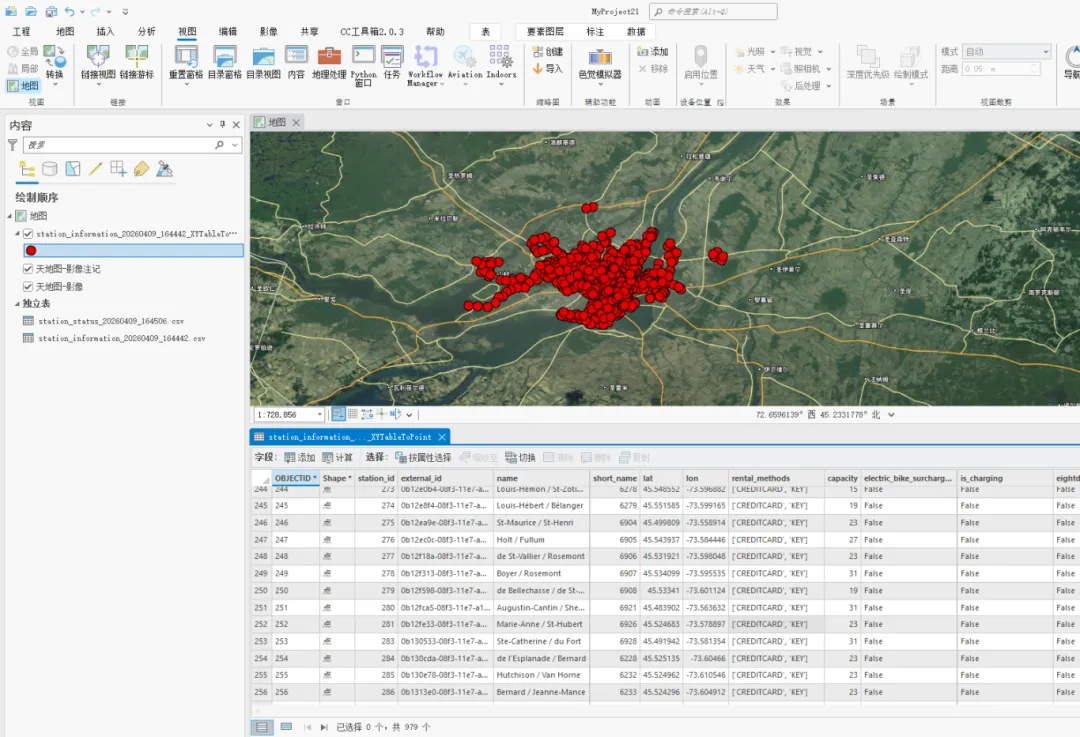 在ArcGIS Pro中将station_information.CSV文件转为要素类,并查看