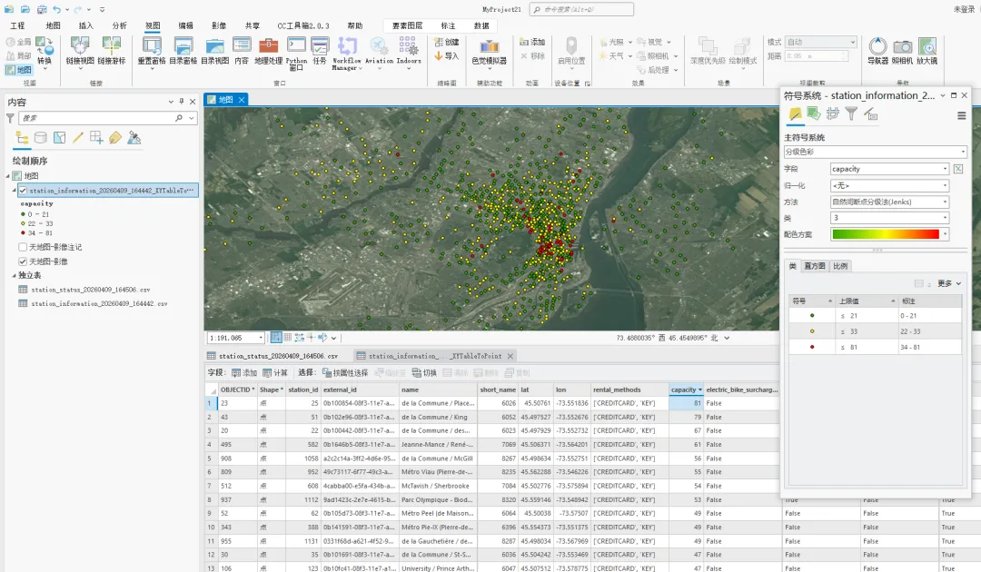 在ArcGIS Pro中加载station_information.CSV文件查看