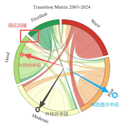 # 1.3 弦图结构参数"sector_space": 3, # 扇区之间的间隔(单位:度)"inner_radius": 90, # 外环内半径(0-100)"outer_radius": 100, # 外环外半径(0-100)"label_radius_pos": 110, # 标签显示半径(需大于outer_radius)