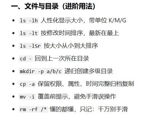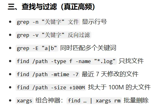 ✔常用的就那么一批,但参数、组合、场景才是关键。这篇不搞入门科普,只整理实战向 Linux 高频命令,适合有一定基础的开发 / 运维同学快速回顾。