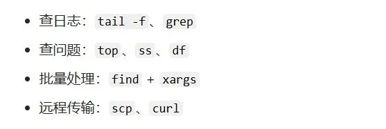 很多同学刚入门时背过一堆基础命令,但真正进项目、上服务器后才发现: