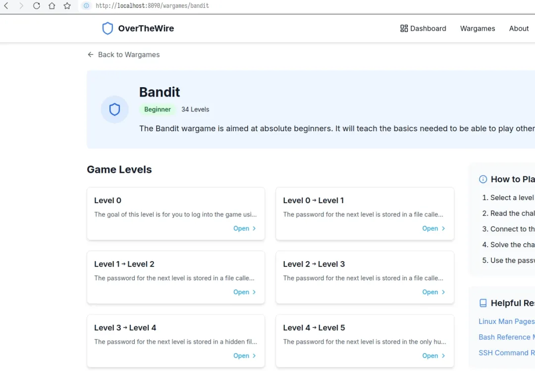 Bandit 是通过解锁不同的关卡来进行的,每一关的任务都要求你解决一些与 Linux 系统、命令行操作、安全相关的挑战。每个关卡的目标是找到下一个关卡的密码(通常是在文件或程序中),然后使用这个密码连接到下一个关卡。