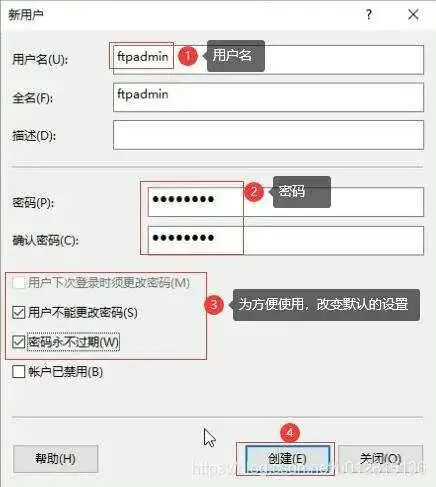 Windows 自带 IIS FTP 只能用 Windows 本地用户/域用户 登录,不能凭空造账号。