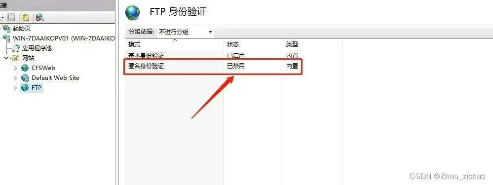 - 打开 IIS → 你的 FTP 站点 → “FTP 身份验证”:禁用匿名,启用基本身份验证