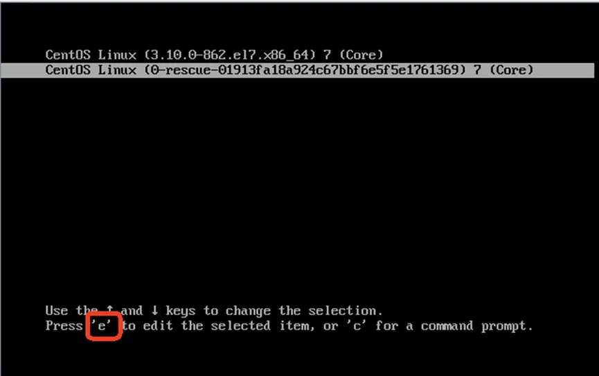 启动时在GRUB界面按e键,编辑启动项。