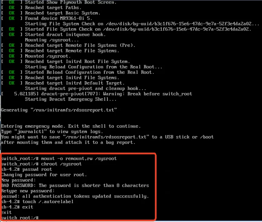 根据提示按Ctrl+X启动进入emergency shell