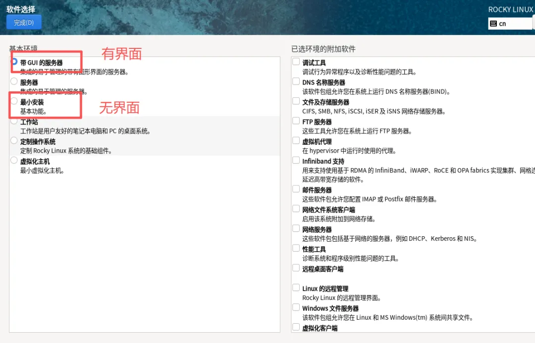 - 需图形界面:选「带 GUI 的服务器」,点击「完成」
