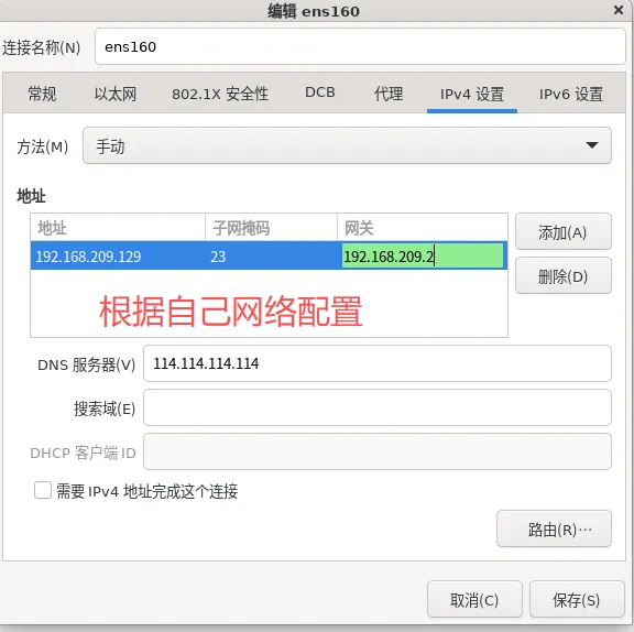 然后根据你的网络情况修改IP和网关:/etc/NetworkManager/system-connections/<网卡名>.nmconnection
