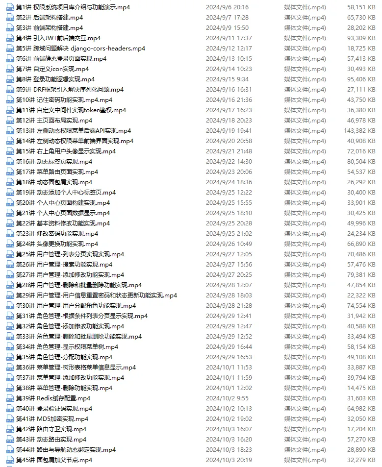 第一套VIP实战:权限系统实战课程 (Django5+DRF +vue3.2+element plus +Jwt ),45讲 已经更新完结!质量杠杠的,好评多多!