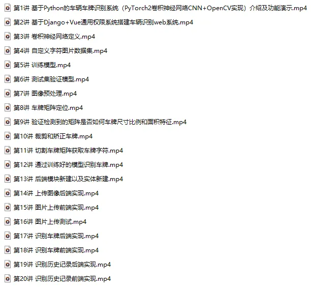 本课程采用主流的Python技术栈实现,分两套系统讲解,一套是专门讲PyTorch2卷积神经网络CNN训练模型,识别车牌,当然实现过程中还用到OpenCV实现图像格式转换,裁剪,大小缩放等。另外一套是基于前面Django+Vue通用权限系统基础上,加了车辆识别业务模型,Mysql8数据库,Django后端,Vue前端,后端集成训练好的模型,实现车牌识别。
