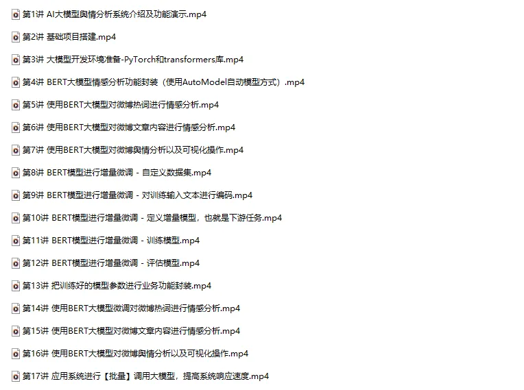 第五套VIP实战:【AI大模型舆情分析】微博舆情分析可视化系统(pytorch2+基于BERT大模型训练微调+flask+pandas+echarts+爬虫) 视频教程,17讲 已经更新完结!质量杠杠的,好评多多!