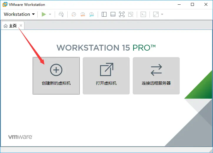 打开 VMware Workstation,点击 "主页" → "创建新的虚拟机"
