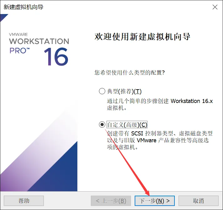 选择 "自定义(高级)" 选项,点击 "下一步"