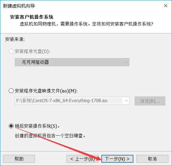 ⚠️ 重要提示:这里选择"稍后安装"而非直接加载ISO,可以避免虚拟机创建时自动启动安装导致的部分配置缺失。