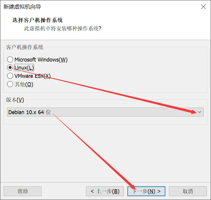 - 版本选择 "Debian 10.x 64位"(Kali 基于 Debian)