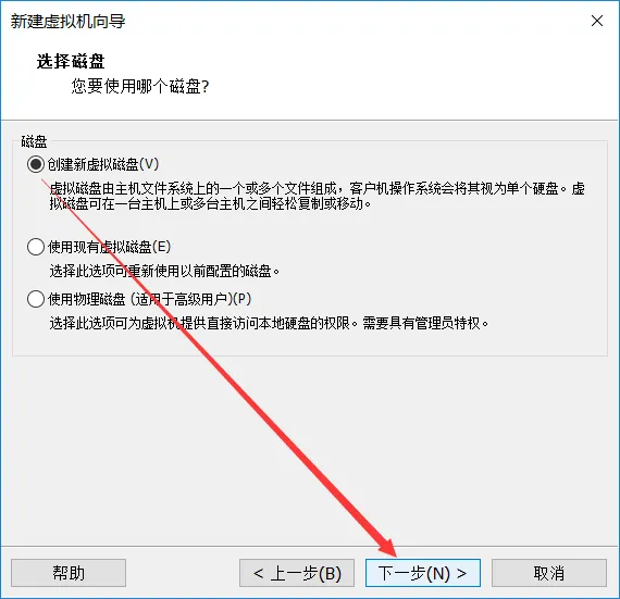 选择 "创建新虚拟磁盘",点击 "下一步"