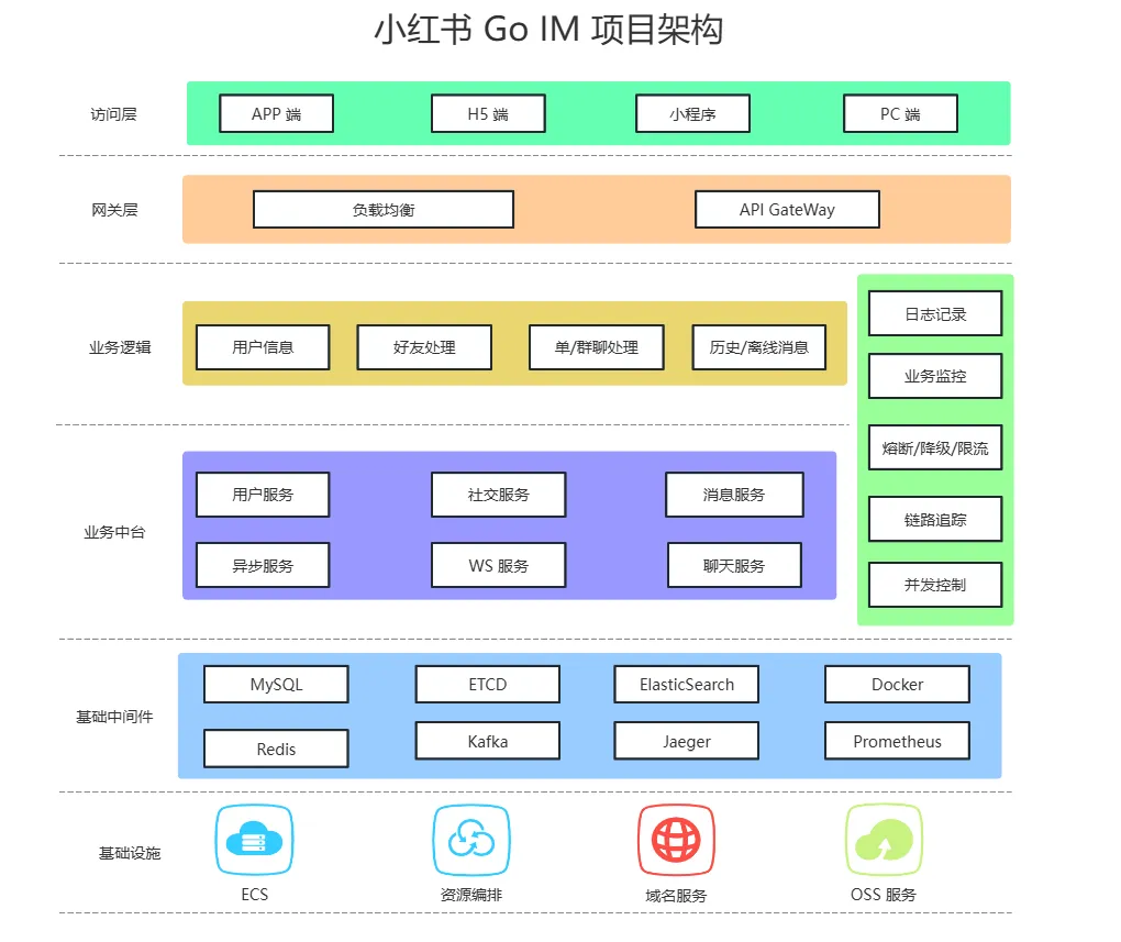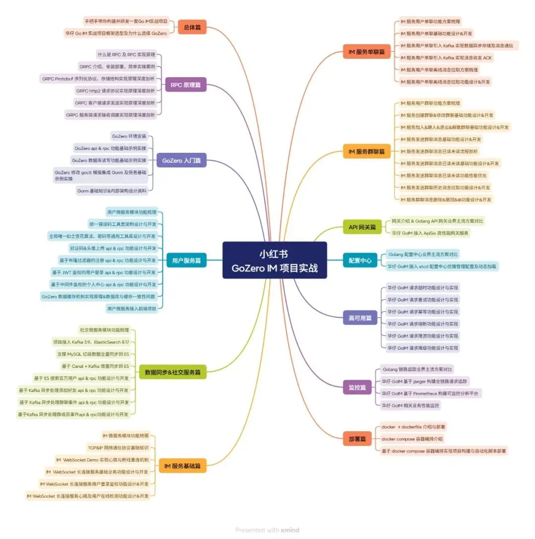 因此,我们搞了这个实战项目,该项目基于GoZero框架,带你从零开始构建一个企业级的分布式 Go IM系统。通过本项目,你将掌握「Golang 实战」、「分布式系统设计」、「容器化部署」、「监控链路」等实战技能。无论你是刚接触微服务的新手,还是希望深化分布式系统理解的中高级开发者,本项目都将通过「理论」+「实战」的方式,完整呈现IM系统从「架构设计」到「部署上线」的全流程。