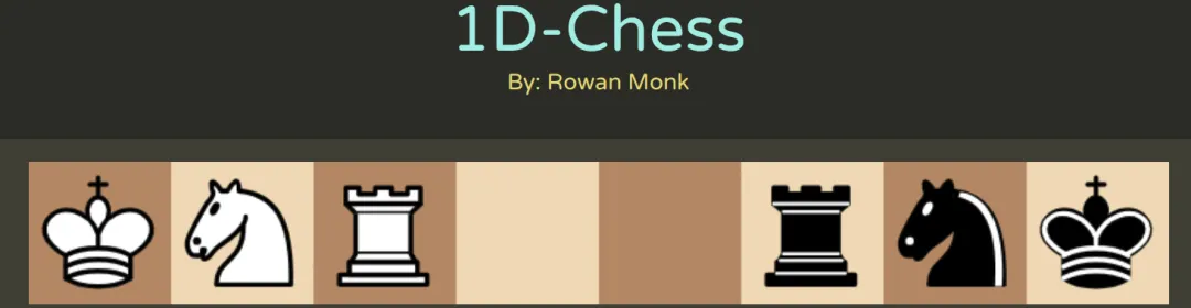 一维国际象棋将传统棋局压缩到一条直线,仅含国王、骑士、车三子:国王每次一格、骑士前后跳两格、车直线任意远。玩家以白方对战AI,目标为将死对方国王;也可能出现僵局、三次重复与子力不足平局。页面提供演示必胜走法;该变体最早由 Martin Gardner 于1980年介绍,白方是否有必胜策略仍待探索。