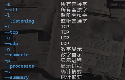 ss同样的,先来查看有哪些选项,可以看到与netstat很相似