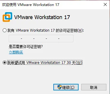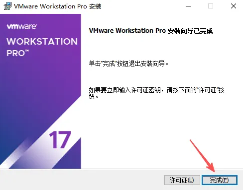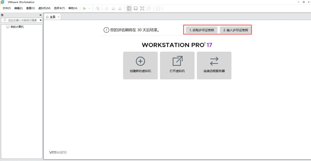 注意,到此,虚拟化软件已经安装完成,这里需要用到许可证密钥,如是学习使用,可通过官网获取免费的“许可证密钥”,否则只能试用30天。