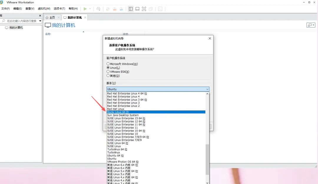选择你自己的Linux类型,我这里是Rocky Linux 64位