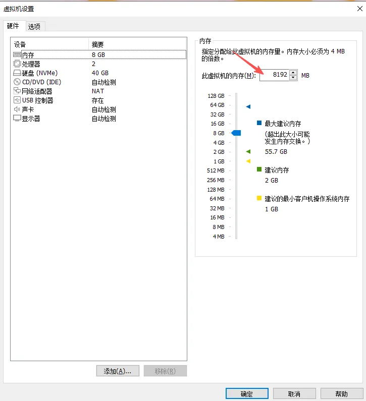 调整内存大小,此处一定要根据自己电脑内存情况来设置,建议2G以上