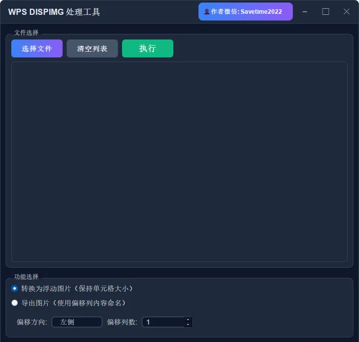**功能描述**:WPS图片处理工具,可处理WPS表格中的DISPIMG函数引用的图片,支持导出和转换为浮动图片,适用于WPS表格图片管理。