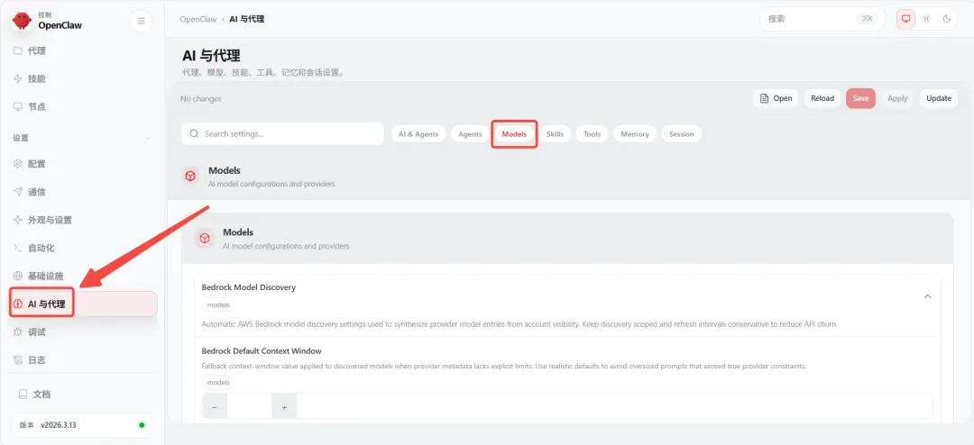 也可手动修改配置文件 编辑 ~/.openclaw/openclaw.json,找到: