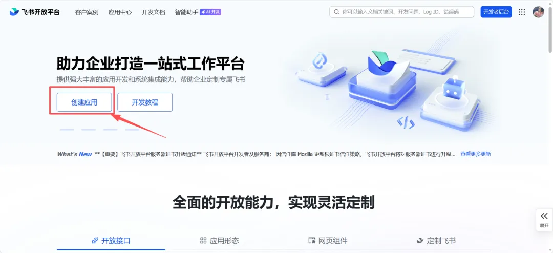 2.1 打开飞书开放平台