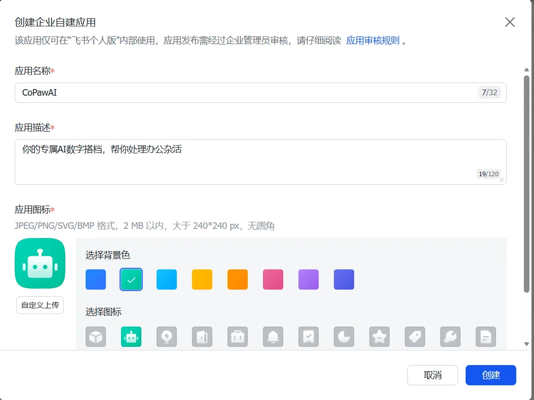 2.2 创建企业自建应用(关键一步)