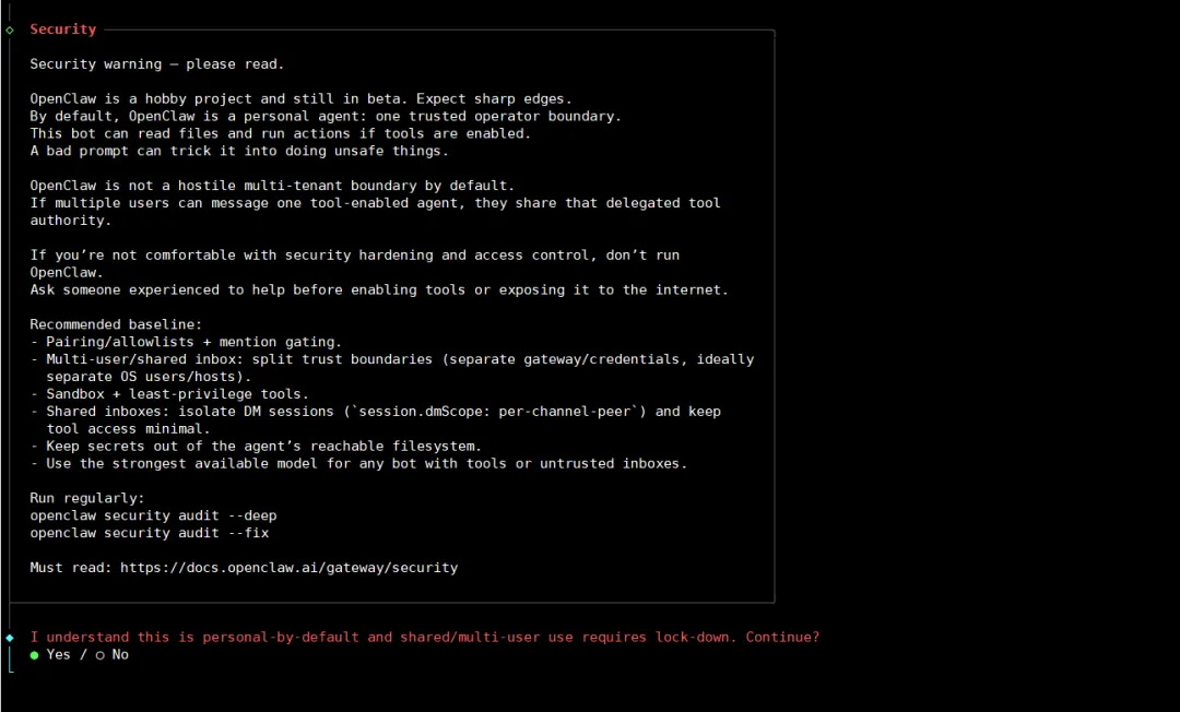 这个界面熟悉不呀,这不就是安装完后的“同意”页面嘛,选“Yes”(键盘方向键上下左右都可以切换)~