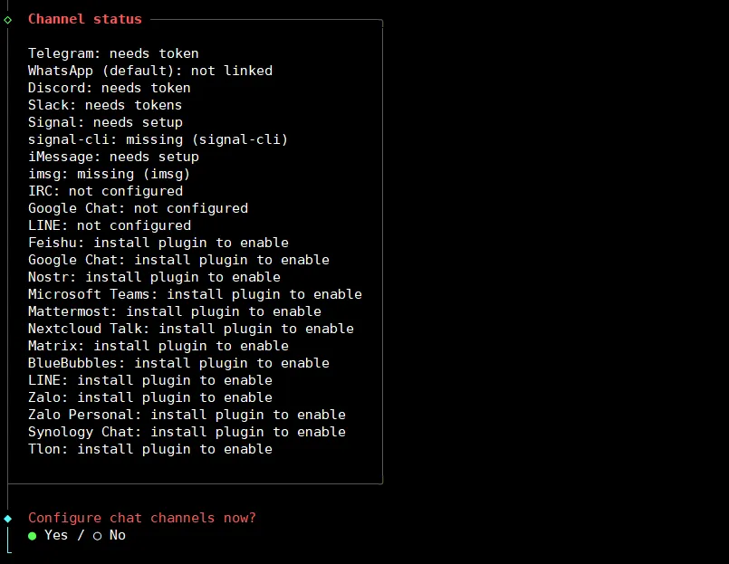 接下来就是选择配置频道,Yes:
