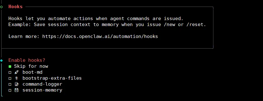 跳过~Hooks 是用于在代理执行特定命令时自动触发预设操作的自动化机制,核心作用是扩展代理的行为能力。