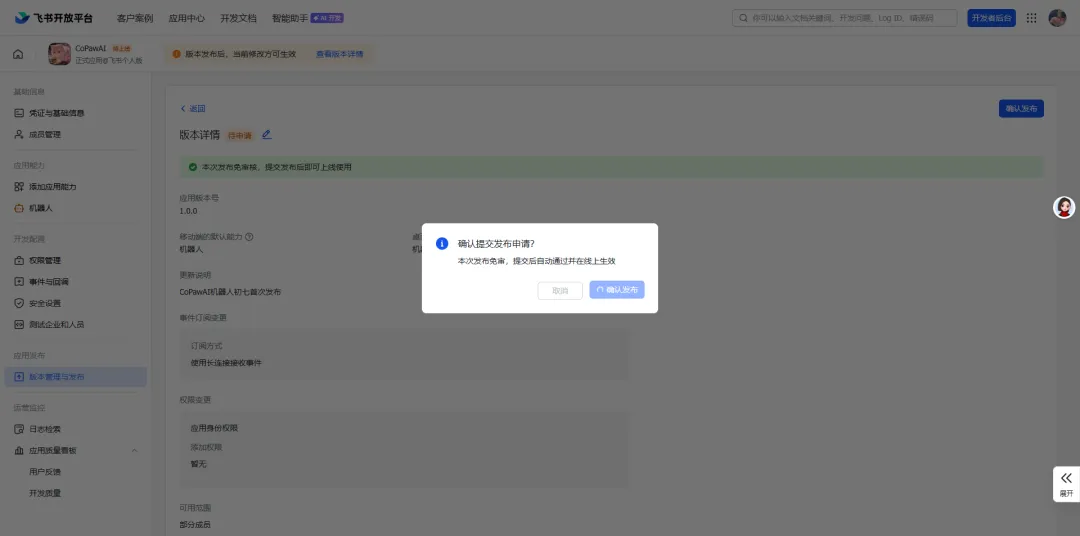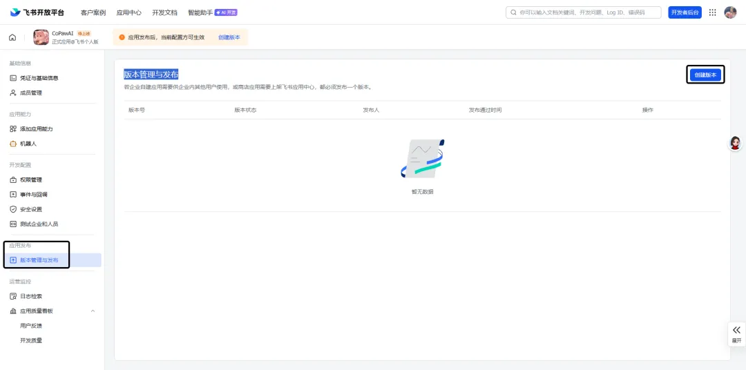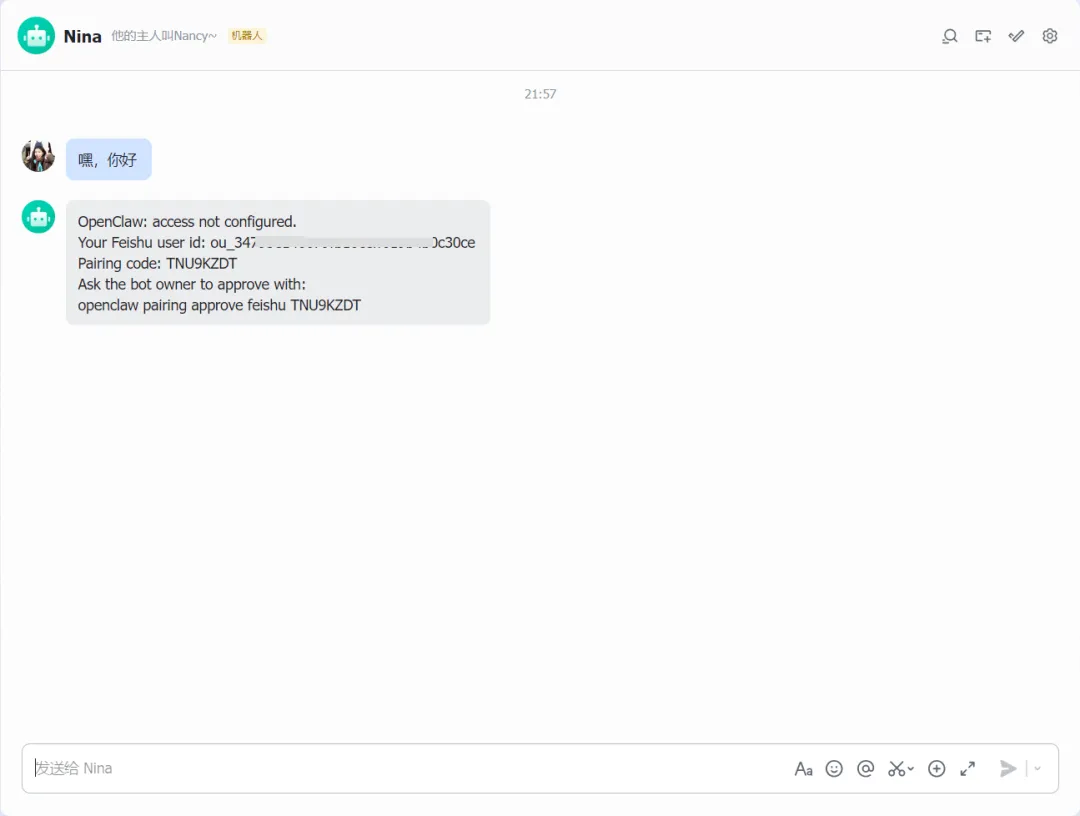 前提:你已经在飞书开放平台新建了一个机器人~