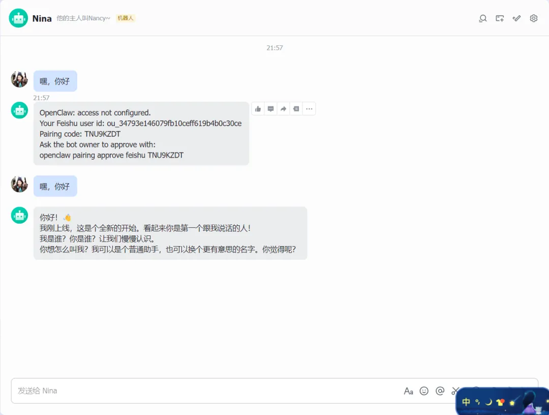 新的智能体配置好喽,去飞书聊聊看看: