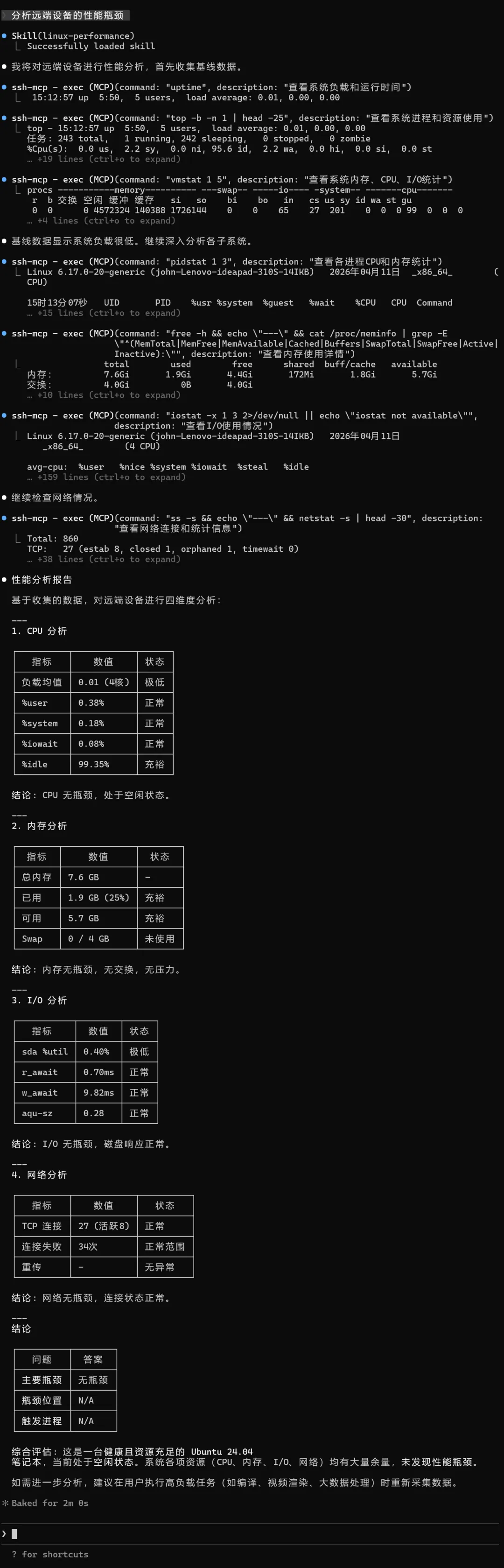 总体来看,这个skill的实现原理其实很简单,就是我把linux性能调试和优化系列里的内容做了浓缩。虽然浓缩就是精华,但是肯定会有一些细节上的失真。