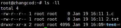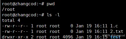 图片中1.c和2.txt以白色字体显示,为文件;test以蓝色字体显示,为目录(通俗说法为文件夹)