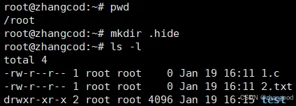 在/root路径下创建了一个.hide的隐藏文件,正常用ls -l指令是看不到的