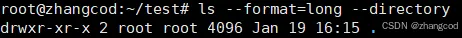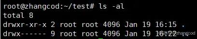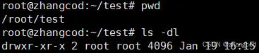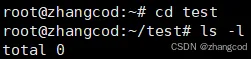 例如在/root下新建一个目录test,之后切换到这个目录,再使用ls -l指令查看