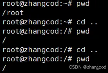 当退到根目录时(用一个/表示),cd ..不能再退,保持在根目录下不变