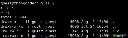 -al为两个选项-a(为all的缩写)和-l的组合,也可以写成ls -l -a或者ls -a -l或者ls -al