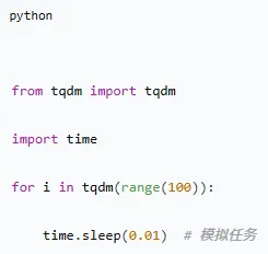 TQDM(源自阿拉伯语“taqaddum”,意为“进展”)使用极其简单,只需用tqdm()包装任何可迭代对象,一个实时更新的进度条就诞生了。它还支持嵌套循环、手动更新等多种场景。