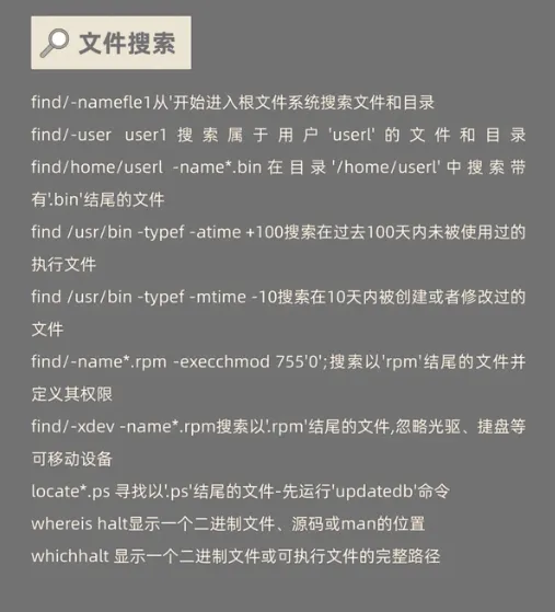 locate:快速查找(需数据库,updatedb更新)