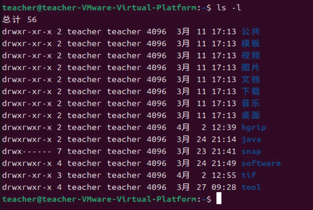 可以看到,用ls -l命令查看某一个目录会得到一个含7列的列表。