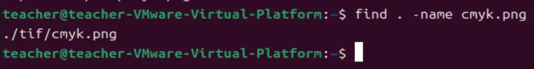 上述命令是在当前目录下递归查找名称为cmyk.png的文件。参数-name指定find使用文件名称来筛选,文件名称需要附加在-name参数后面,文件名称是区分大小写的,若不区分大小写,可以使用-iname参数。