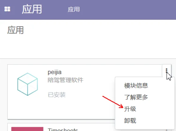 id:access_nebula_car_type是记录的外部标识符,模块唯一name:nebula.car.type描述性标题,默认规则是模块名.类名model_id:模型的外部标识符,ODOO自动生成的,一般是model_模块名称,点用_代替,group_id:指明授权的安全组,这里给group_peijia_manager组授权。perm_write,perm_create,perm_unlink:模块读、写、创建、删除权限。这里就是给peijia管理组全部权限,赋值1即有权限。在之前添加权限组的时候已经把管理员添加到peijia管理组里面,所以我们用管理员登录是可以使用该模块的。